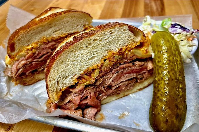 Loin of pork, ham, Swiss, pickles, dijon served on onion ciabatta roll.